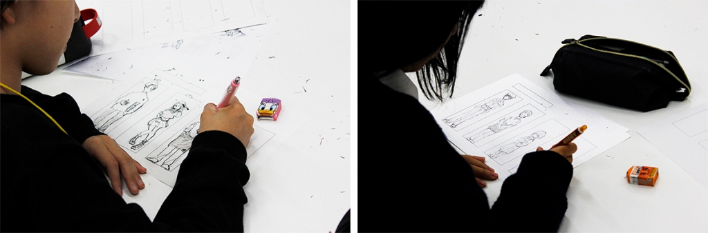 人物を描く際に、ただ好きに描くのではなくキャラクターの個性や性格などを持ち物、服装、身長や体格でかき分けていきます。