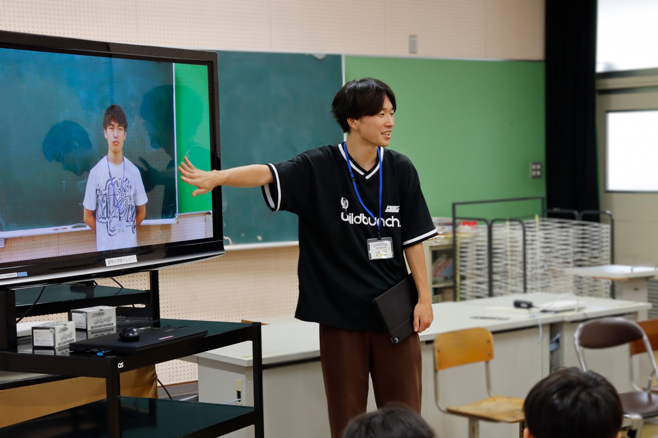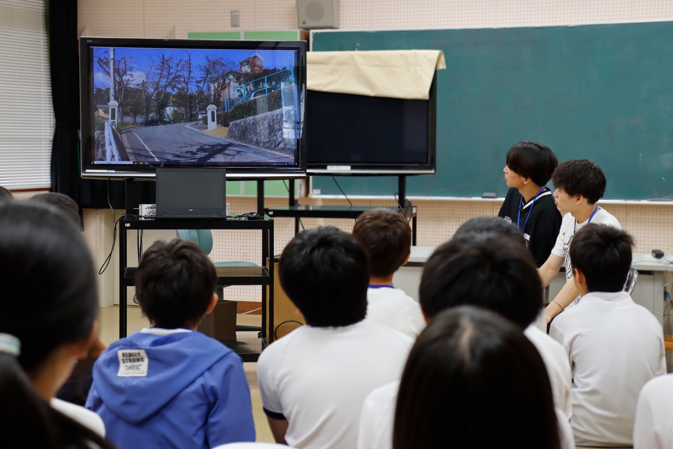 本学情報デザイン領域3年生の栗田有基さん、山田涼介さんが小学生たちの動画制作をサポートします。