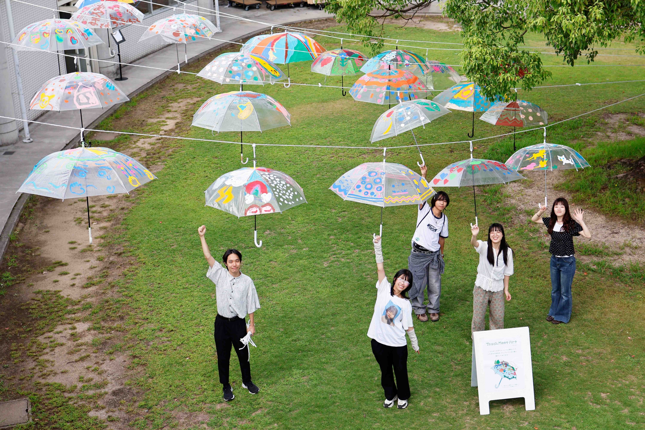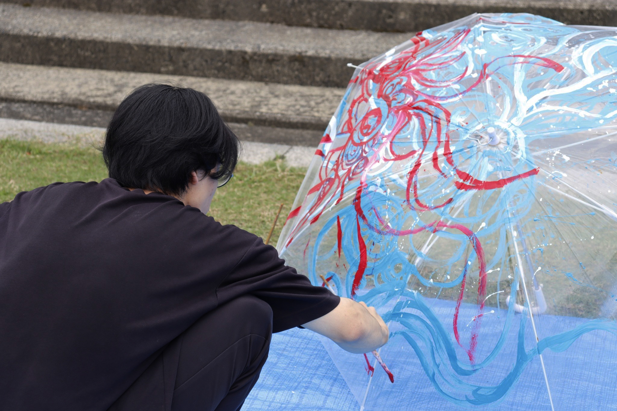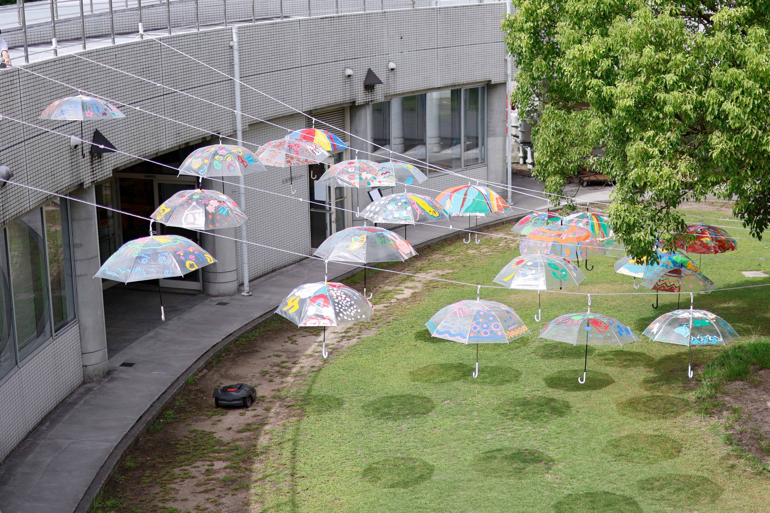 学内で回収した不用な傘をキャンバスに見立て、自由にペイントしていただきました。