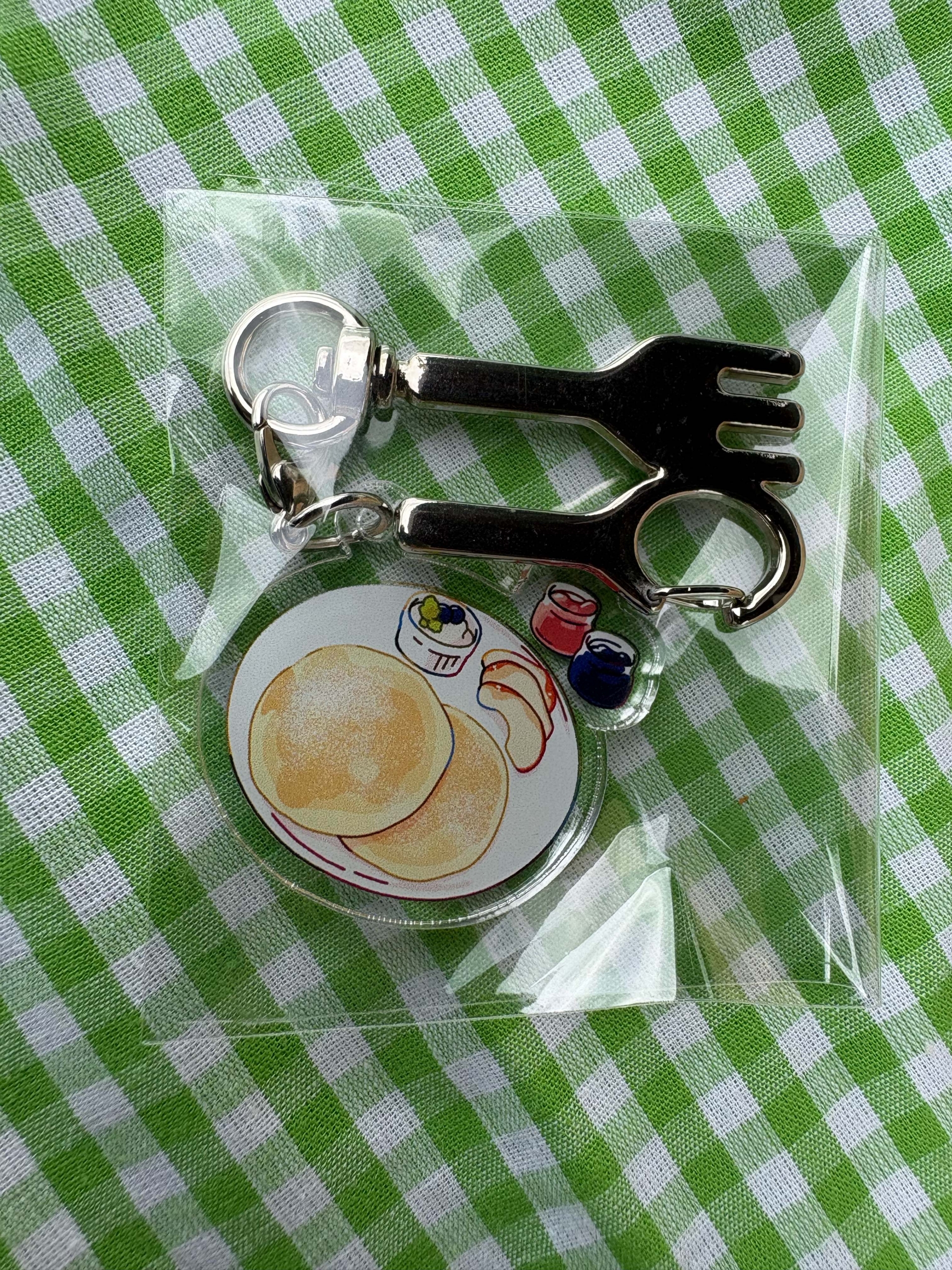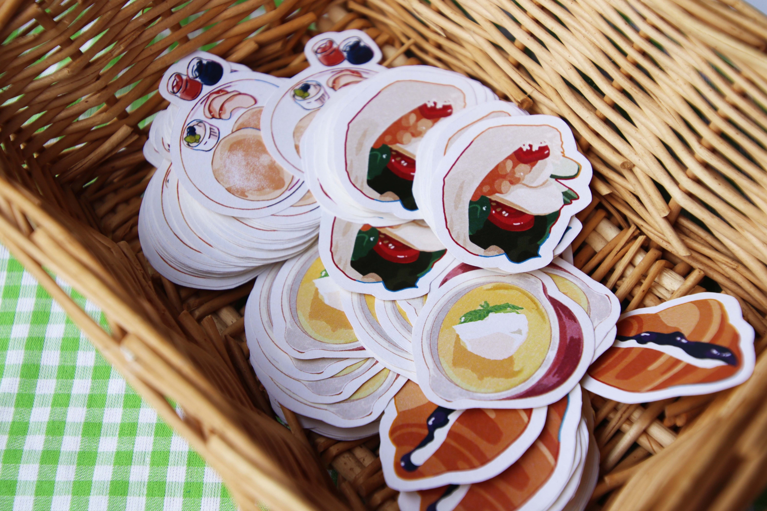 カフェテリア「結」のメニューを描いたアクリルチャームとステッカーを制作。