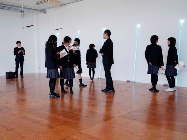 大学施設もまわり、在学生の制作場所や制作途中の作品も見学。学内の作品とともに記念撮影。