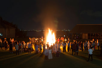グラウンドに蕾をイメージしたオブジェを設置。そのオブジェを炎上させ、響心祭のフィナーレを飾ります。